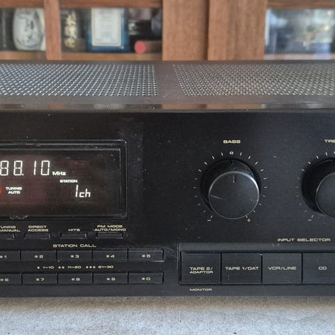 Fin receiver på 2 x 15 Watt RMS ved 4 Ω. Der følger 2 vintage Philips højttaler med.