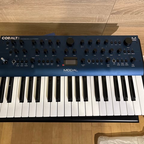 8 voice extended virtual-analogue synthesiser module. Opgraderet til seneste firmware version med factory presets. Original emballage, USB kabel og strømforsyning medfølger. Der medfølger også et uoriginalt formsyet støvcover fra st3nd.com (https://st3nd.com/product/dust-cover-modal-electronics-cobalt8m/)