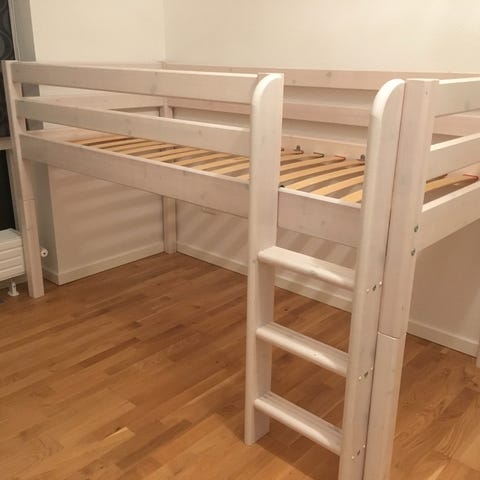 Fin Flexa Thuka halvhøj seng med stige og skrivebord