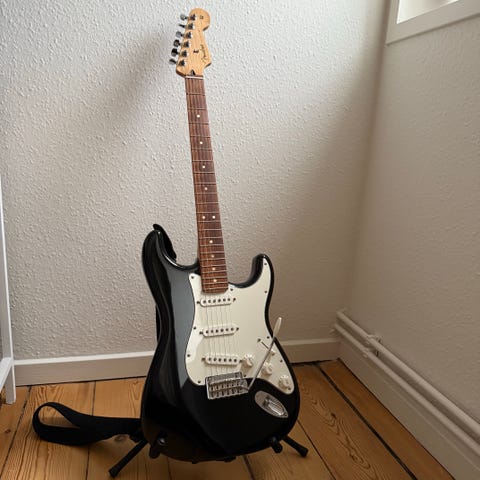 Fender Player I I Strat M N ACB, Fender 3 m. guitar kabel, guitar stativ og Fender guitar taske. Købt det hele hos Thomann.dk d. 18-3-25. Har spillet får gange. Er som ny. Sælger pga mistet interesse. Bruger den ikke mere siden maj. Guitar er blevet justere og skifte til top strengene af en professionel.