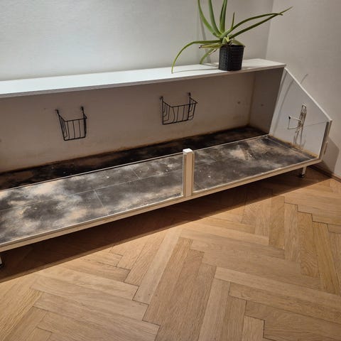 Flot åbent specialbygget marsvinebur. Mål: højde: 54 cm, dybde: 60 cm, længde: 120 cm. Ny vandflaske, madskål, 2 huler, neglesaks, børste og transportkasse følger med. (Også stort nok til 2 marsvin).