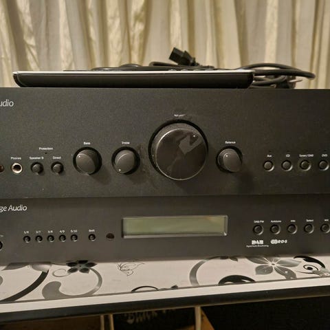 Cambridge Audio forstærker og CD-afspiller incl. systemfjernbetjening. Spiller perfekt.