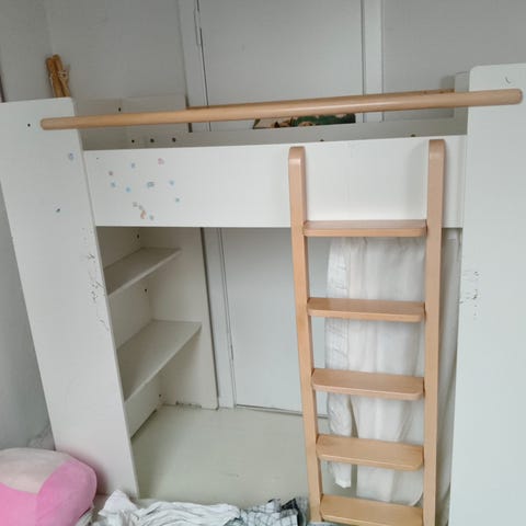 Forstærket på undersiden, så forældre også kan ligge i sengen. Gratis - madras følger ikke med.