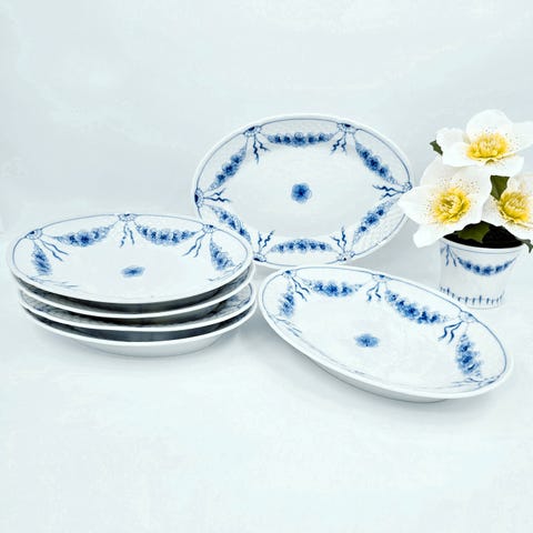 Her har vi et stort rundt fad, lige til en lagkage, fadet der også kan rumme den store middags servering, Empire utroligt flot stel med skælmønster og anemoneranker, det er lige til, at mixe og matche med dine andre stel🥰