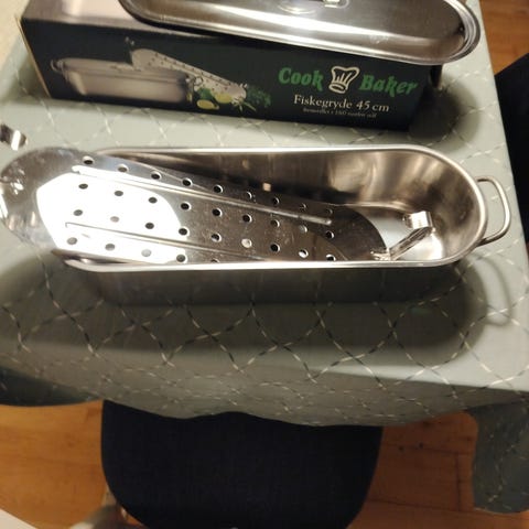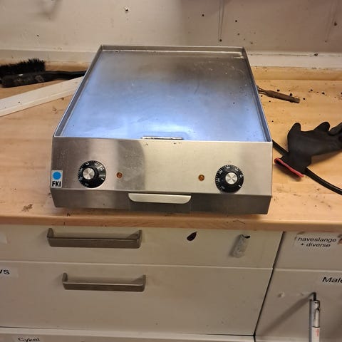 Varmepumpe i stål med flere huller til ventilation eller varmefordeling. Enheden er designet til madlavningsbrug og har en robust konstruktion. Farve: rustfri stål.