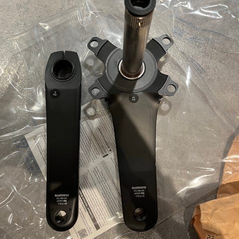Kranksættet er i glimrende stand med næste ny (max 250 km) 53 t klinge. Der medfølger også en anden 53 t klinge. Den er fuldt funktionel men dog noget mere slidt.
