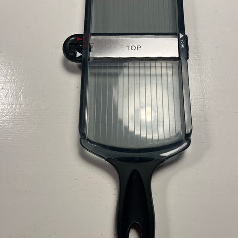 Alle dele kan tages af og tåler maskinopvask, hvilket gør det meget brugervenligt i hverdagen. Et godt køkkenredskab til både almindelig madlavning og mere præcist snittearbejde.