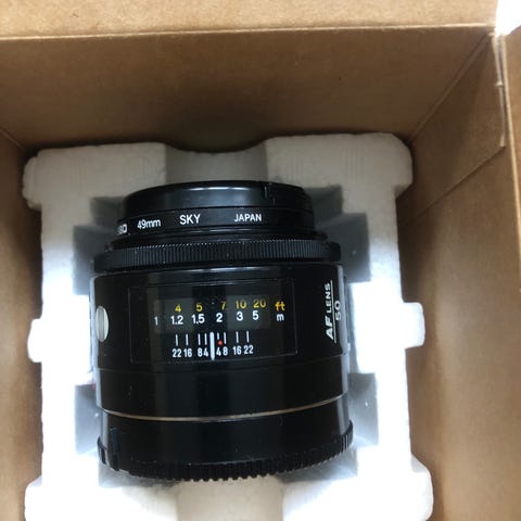 Lysstærkt Minolta 50mm 1,4 objektiv.