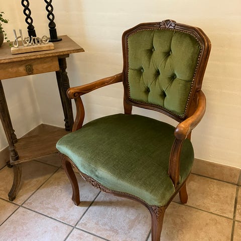 Flot ompolsteret og nybetrukket rokokko stol. Stolen står rigtig fin og er i god stand