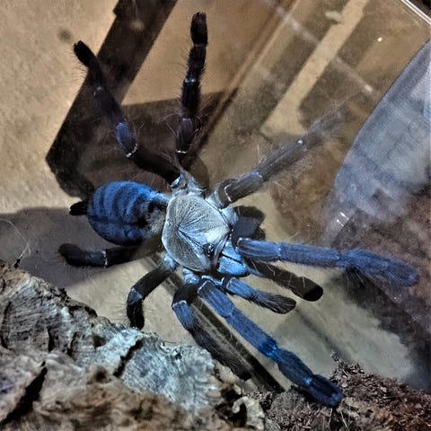 2 Phidippus Regius. En dreng og en pige. Vi ved ikke præcis hvor gamle de er, men vil gætte på at pigen er ca. 1år og drengen ca. 6 måneder. Prisen er pr. stke og med terrarie og indhold.
