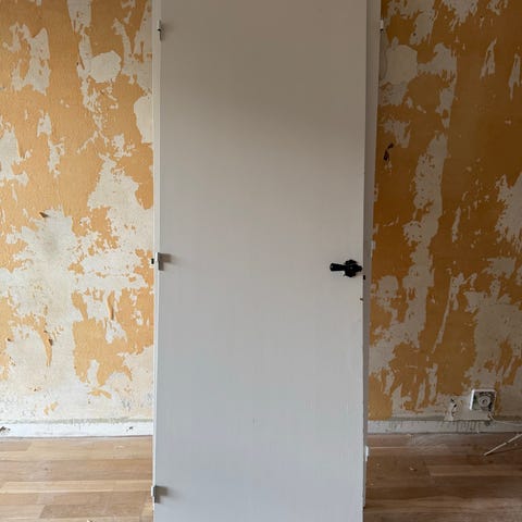Døre/fløjdøre/vinduer/låger gamle i fyrretræ med håndtag lås og nøgle.