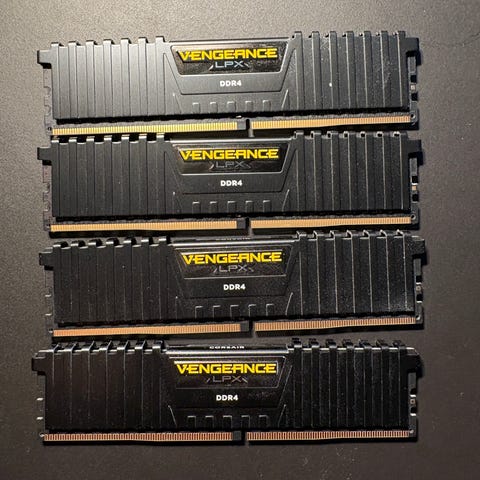 4 styks 8gb Corsair Vengeance 3200mhz RGB RAM. Brugt men stand som ny uden ridser eller brugs spor.