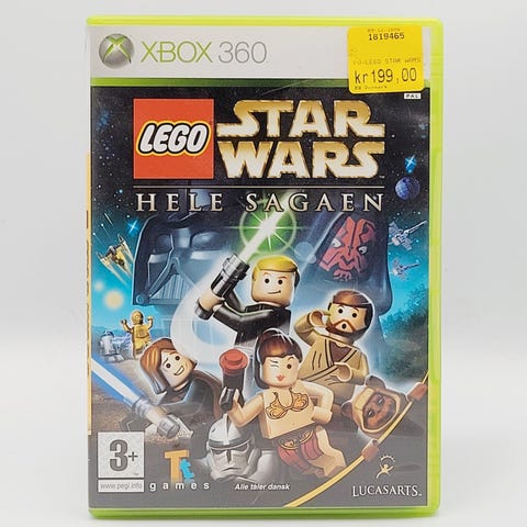 LEGO Star Wars Complete Saga Xbox 360 spil. Klassisk action- og eventyrspil baseret på Star Wars-universet, hvor spilleren kan opleve historien gennem LEGO-figurer og -miljøer.
