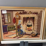 Billedet forestiller en broderet scene med to børn, indrammet i en gylden ramme.- Bemærk at mail, chat og beskeder ikke besvares, og varen skal købes på knappen "Gå til varen". Efter reservering af varen har du 10 dage til at afhente den i den butik, varen er på lager i.