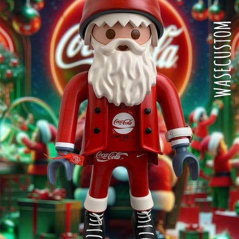 Det er en kreativ og personlig version af en Playmobil-figur, sandsynligvis inspireret af et bestemt tema eller et samarbejde med mærket Pepsi.