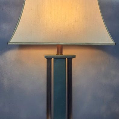 Unikt ved disse lamper er den strålende kirsebærtræindlæg på foden og den massive kirsebærtræs søjle.