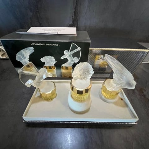 Ikonografien viser den berømte flaske placeret i sit etui, med teksten «Guerlain, Parfumeur à Paris siden 1828», en ikonisk typografi for huset.
