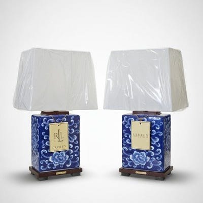 Ralph Lauren Home - Bordlampe (2) - Porcelæn, Træ - Luksuriøst blomsterdesign