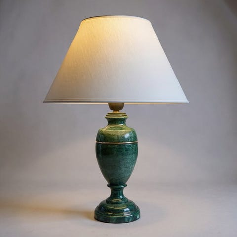 Smuk massiv marmor bordlampe i empire-stil. Med yndefulde, koldbronzelakerede ornamenter. Kongelig elegance i fremragende stand. Et smykke til stuen eller kontoret. Lampskærmen er ny og stadig i originalemballagen. Vælg den rette belysning for en ideel atmosfære i hjemmet. Sparepære / LED kan anvendes.