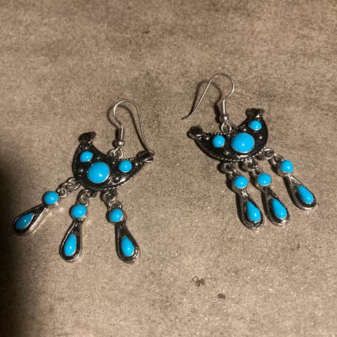 Céline burgunderfarvede hoops af guldpladeret metal, barok stil med små perlekuglede detaljer, til kvinder, ca. 2,5 cm bred, i alt 27 g, i meget god stand. Klik på den blå "gå til varen" knap, for at købe eller byde på denne vare. Den samlede pris vil blive vist inden du afgiver dit bud.