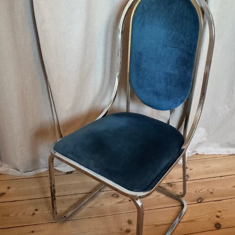 To stole med kromglinslet metalstel og sæde/bagside i grå polypropylen, dateret 1970–1980, oprindelse Italien, samlede mål cirka 83 cm i højden, 47 cm i bredden og 44 cm i dybden, i god brugt stand med mindre alders- og plettepræg. Klik på den blå "gå til varen" knap, for at købe eller byde på denne vare. Den samlede pris vil blive vist inden du afgiver dit bud.