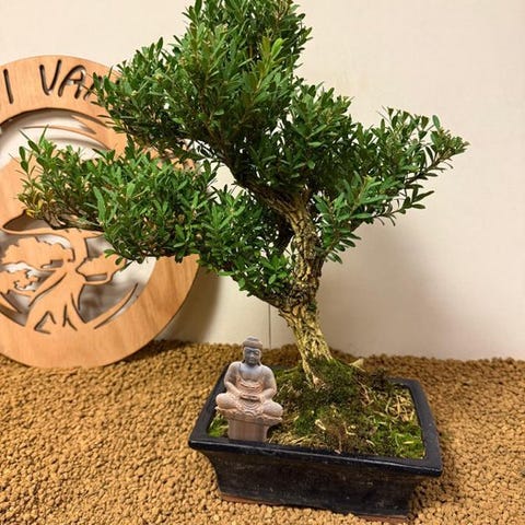 Denne 20 år gamle Buxus Harlandii bonsai, stedsegrøn, står i en kvalitets bonsai-skål fra Japan. Klik på den blå "gå til varen" knap, for at købe eller byde på denne vare. Den samlede pris vil blive vist inden du afgiver dit bud.