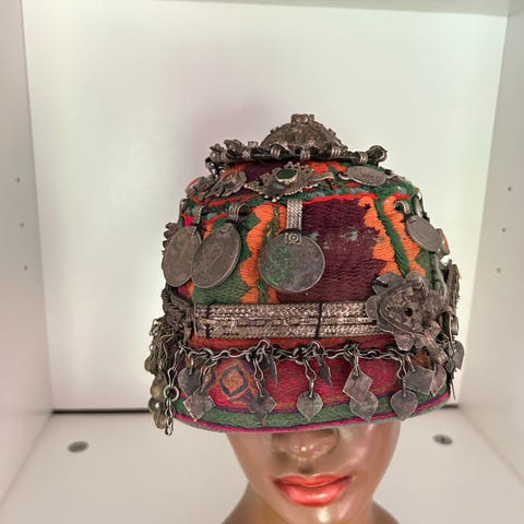 Det er et eksempel på spejlbroderi (shisha) og korsstingsarbejde, en traditionel tekstilkunst fra regionen.