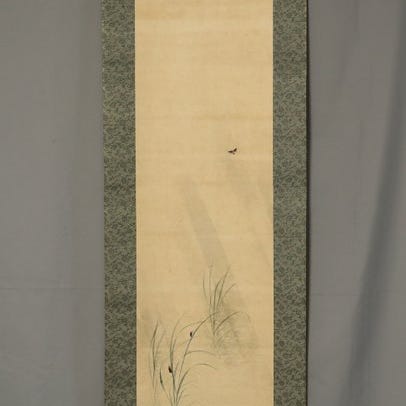 Hængende rulle i papir fra Heisei-perioden af Nakajō Shindō (Garyū), med titlen 月到中秋満 tsuki wa chuushuu ni itatte mitsu og Garyuu-signal, monteret i silke med træenderuller, 206 cm høj og 48,2 cm bred, et enkelt stykke i rimelig stand. Klik på den blå "gå til varen" knap, for at købe eller byde på denne vare. Den samlede pris vil blive vist inden du afgiver dit bud.