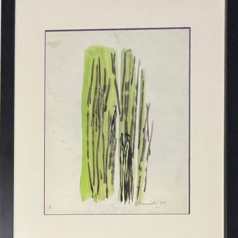 Papir i meget god stand. Forvent at indramme: en fold langs en sidekant, og et revet hjørne limet med tape.