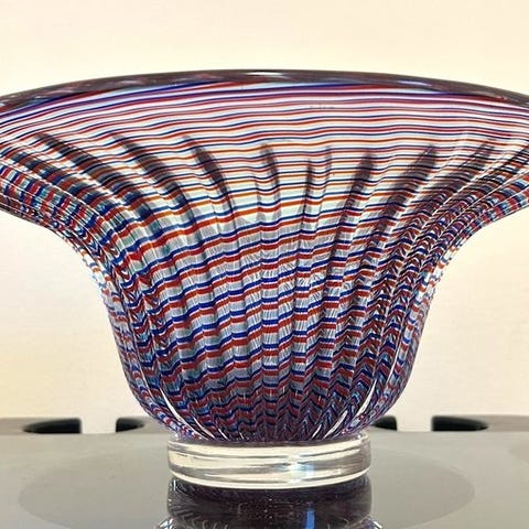 Klar-glas vaser signeret E. Kovac (2003) af Emil Kovac Leerdammer skole, 17,5 cm høj og 14 cm diameter, Holland, i god stand med små tegn på alder og pletter. Klik på den blå "gå til varen" knap, for at købe eller byde på denne vare. Den samlede pris vil blive vist inden du afgiver dit bud.