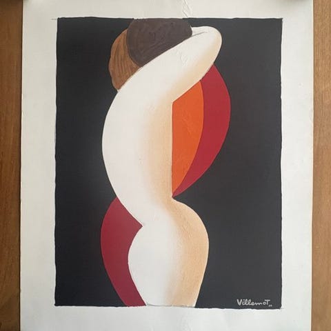 Plakat lavet i 1980 af Bernard Villemot for SNCF, dedikeret til servicevoiture-lit, et symbol på den elegante og komfortable natrejse. Billedet er opbygget med store flader af flad farve og skarpe konturer: en kvindefigur sovende, fanget i et øjeblik af absolut ro, bliver en metafor for hvile, intimitet og diskret luksus. Den nattelige palette, domineret af dybe blå og bløde rosa, formidler en følelse af ro og raffinement, typisk for Villemot's umiddelbart genkendelige stil.