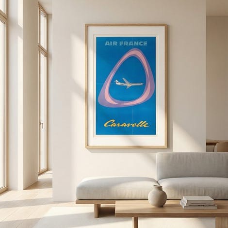 Jeg foreslår dig dette fantastiske gamle agentplakat 'Canada – Air France', en officiel genudgivelse fra 1999 lavet af Air France. Værket er skabt af J. Anne Dore, en anerkendt illustrator kendt for sine stiliserede og evocative kompositioner i 1950'erne.
