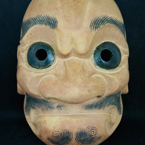 En fint håndhugget Ko-omote Noh maske af Fuzan Nansai fra Japan, træ og gofun, ca. H 21,2 cm x B 13,3 cm x D 6,5 cm, i god brugt stand med mindre aldersmærker, med silkepose og træopbevaringsboks. Klik på den blå "gå til varen" knap, for at købe eller byde på denne vare. Den samlede pris vil blive vist inden du afgiver dit bud.