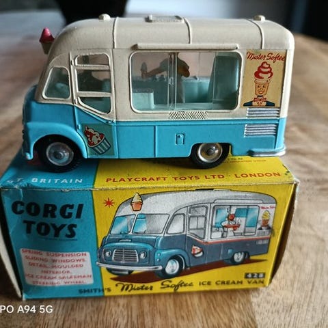 Modellino nr. 486 fra Corgi 'Kennel service wagon' fra 1967 i enestående tilstand, som på billedet, komplet med originalemballage og med de fire hunde, som normalt ikke er til stede, og i fuldt sæt.