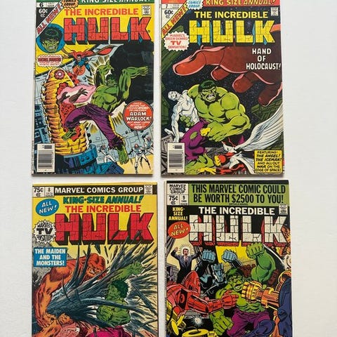 Marvel Comics What If? førsteudgave tegneserie samling på engelsk, hæftet binding, 9 numre (#1–#9) fra 1977–1978, i Near Mint-tilstand. Klik på den blå "gå til varen" knap, for at købe eller byde på denne vare. Den samlede pris vil blive vist inden du afgiver dit bud.