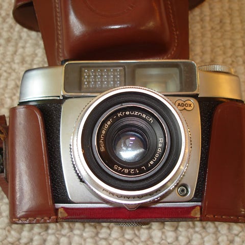 Smukt Konica Pearl I-RS analogt kamera, lavet i Japan 1950, med objektiv Konishiroku Hexar 75 mm 4.5 og konirapid S lukker, i god fungerende stand.