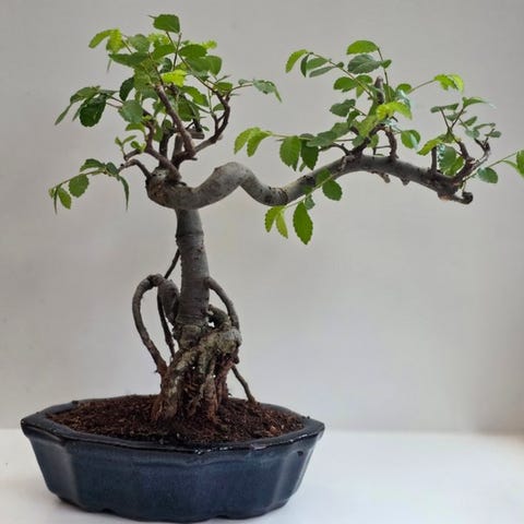 Bonsaiet er plantet i en enkel, elegant mørk resin-krukke, fyldt med et drænende substrat, der er ideelt til olivnedyrkning. Denne art er kendt for sin modstandsdygtighed, lang levetid og evne til at trives i solrige udendørsforhold, hvilket gør den til et fantastisk valg for både begyndere og samlere.