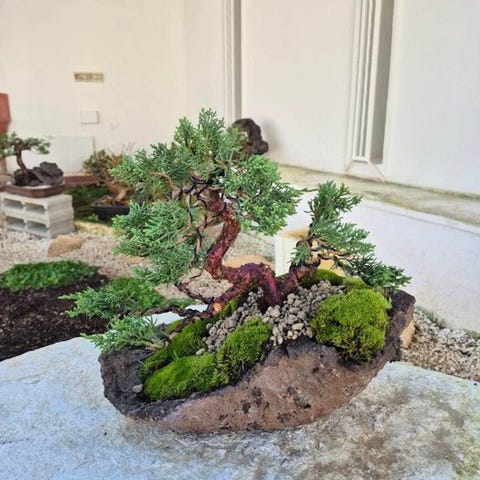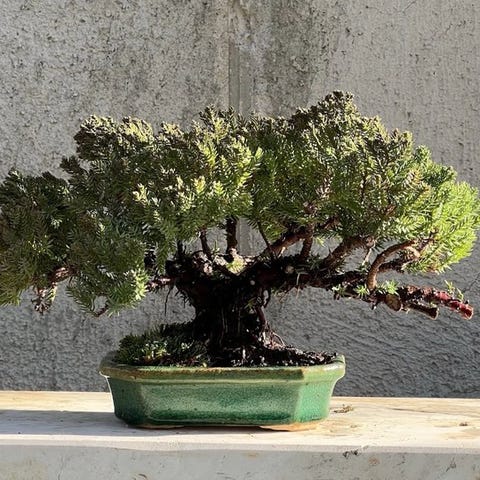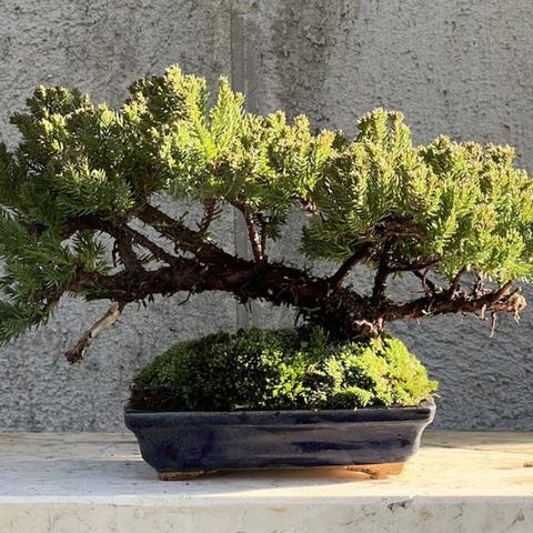 Juniperus-bonsai Kishu, samlingstype fra Italien, vækstform uformel opret (moyogi); stammediameter 15 cm, højdem på træet 28 cm, dybde af træet 28 cm, potte 20×15 cm, pottehøjde 7 cm. Klik på den blå "gå til varen" knap, for at købe eller byde på denne vare. Den samlede pris vil blive vist inden du afgiver dit bud.