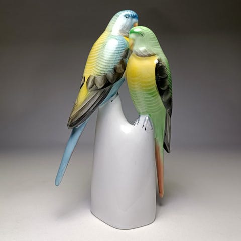 Porcelænsskulptur med titlen Appelvink, Grasparkiet, Goudvink, underskrevet, fra Tyskland, dateret 1967, dimensioner 9 cm (B) × 12 cm (D) × 33 cm (H), vægt 1600 g. Klik på den blå "gå til varen" knap, for at købe eller byde på denne vare. Den samlede pris vil blive vist inden du afgiver dit bud.