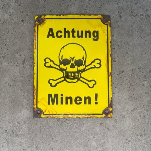 Meget tidlige advarselsskilte/dødningehoved-skilte fra ca. 1920-1940'erne.