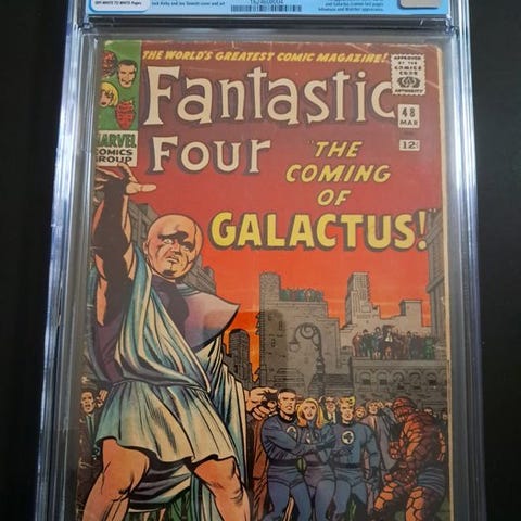 Fantastic Four #45, første udgave, udgivet af Marvel Comics i 1965, hæftet tegneserie med kunst af Jack Kirby, Joe Sinnott og Stan Lee, tilstand Very Fine. Klik på den blå "gå til varen" knap, for at købe eller byde på denne vare. Den samlede pris vil blive vist inden du afgiver dit bud.