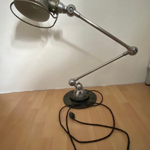 Grøn Jielde industriel lampe fra Frankrig, cirka 1970–1980, lavet af jern, i god brugstilstand med små tegn på alder og pletter, højde 120 cm, bredde 25 cm, dybde 25 cm, vægt 3 kg. Klik på den blå "gå til varen" knap, for at købe eller byde på denne vare. Den samlede pris vil blive vist inden du afgiver dit bud.