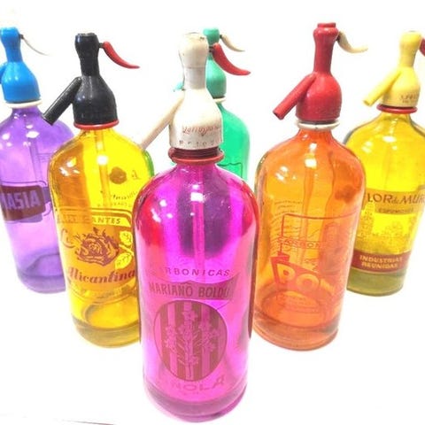 samling af 6 vintage farvede sifoner fra Spanien fra 1960