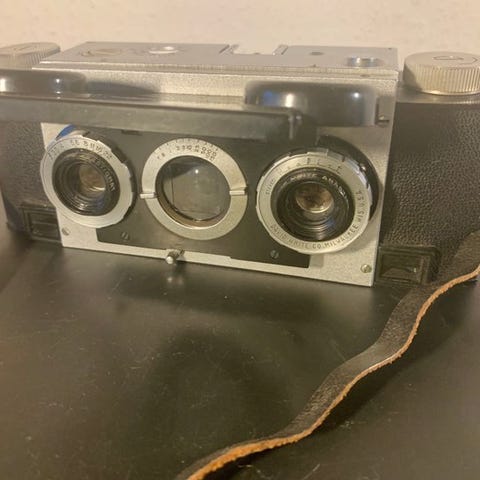 Brand Obekend, model uk/ prototype, fysisk tilstand Meget god og testet og fungerer; en rullfilmstereokamera sandsynligvis fremstillet i England tidligt i det forrige århundrede, fronten i træ, bagstykket i metal integreret i træet, søger og vaterpas i god stand, objektivåbning i to indstillinger, lukker styres fra siden, meget sjældent eksemplar sandsynligvis prototype. Klik på den blå "gå til varen" knap, for at købe eller byde på denne vare. Den samlede pris vil blive vist inden du afgiver dit bud.