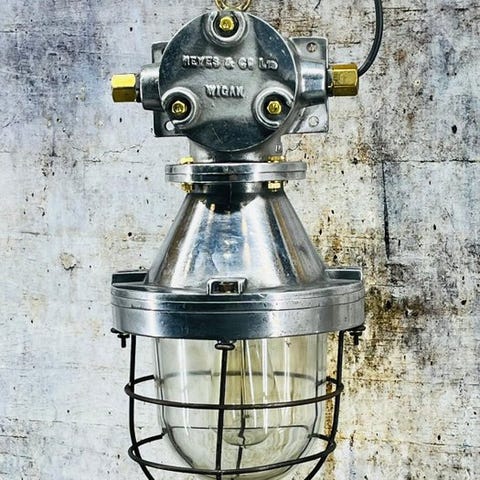 Fantastisk industrilampe, der passer ind i alle hjem, god til over spisebordet, værkstedet, poolbordet, baren eller restauranten. Lampen har været brugt og viser en række slidmærker som rust og ridser, hvilket giver et unikt vintage-look.