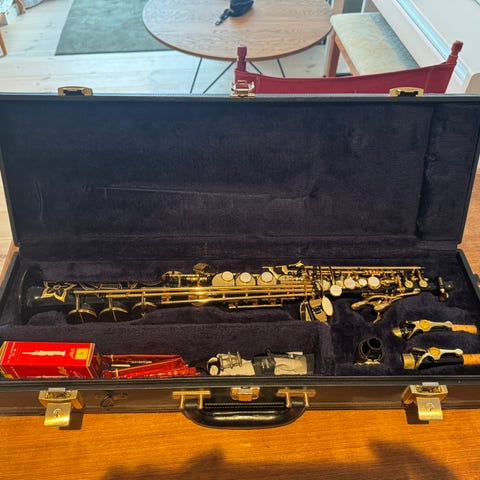 Sax soprano Sib, finish lakeret i blankt, guldtonet messing, med rygsækcover, børste og rengøringsklud, mundstykke, binding og læbe. Instrumentet er kontrolleret og individuelt inspiceret.