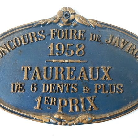 Prix de Agricole – Vaches 1937 er et originalt/officielt stykke fra Frankrig, støbt aluminium, i udmærket stand med minimale brugsspor og alderstegn, måler 24x23 cm og blev udstillet ved landbrugsudstillingen i Paris Domfront 1937 hvor den vandt førsteprisen for køer. Klik på den blå "gå til varen" knap, for at købe eller byde på denne vare. Den samlede pris vil blive vist inden du afgiver dit bud.