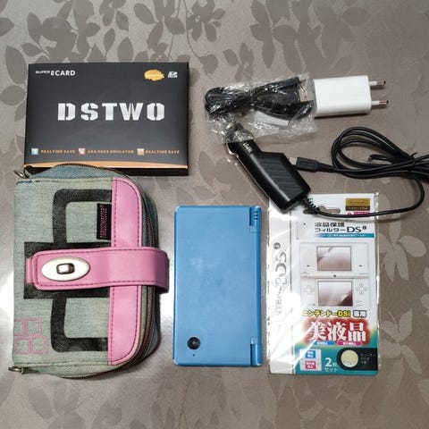 Nintendo DS Pack Collector DS Blå med spil og tilbehør, 2 GB hukommelse, fremstillet i 2005, i funktion, i originalemballage, i særdeles god stand, inkluderer ny oplader, ny stylus, ny original R4 Revolution homebrew-kortlæser med omkring 130 spil, fem NDS-titler Narnia, Nintendogs, Fort Boyard, Tim Power Handyman og FIFA Street 2, samt en vintage bæretaske. Klik på den blå "gå til varen" knap, for at købe eller byde på denne vare. Den samlede pris vil blive vist inden du afgiver dit bud.