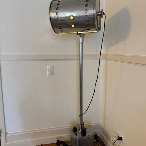 Gulvlampe Atelier Lamote i metal, designet af K. Lamote, Belgien, i næsten ny tilstand, med en E27 reflektorlampe, mål 70 cm høj, 66 cm bred, 43,5 cm dyb, vægt 6 kg, og en 2 m rød strømkabel med integreret kontakt. Klik på den blå "gå til varen" knap, for at købe eller byde på denne vare. Den samlede pris vil blive vist inden du afgiver dit bud.
