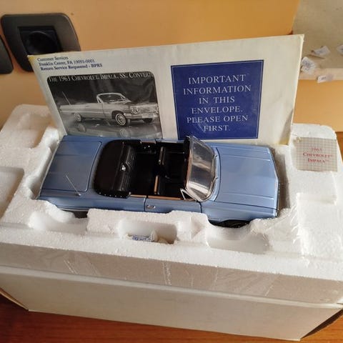 Franklin Mint 1:24 skala die-cast model af en 1986 Chevrolet Corvette Convertible i mint stand, med original emballage. Klik på den blå "gå til varen" knap, for at købe eller byde på denne vare. Den samlede pris vil blive vist inden du afgiver dit bud.